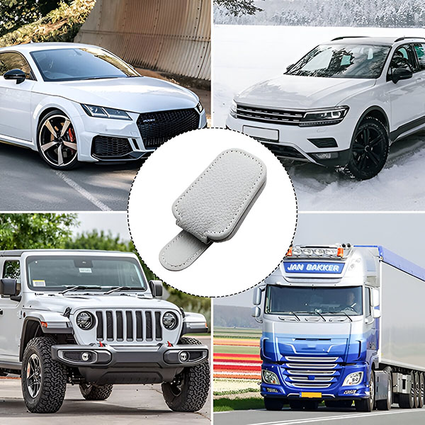 Изработен од вистинска кожа, овој држач не само што ги штити очилата за сонце, туку и додава луксузен допир на интериерот на автомобилот. Текстурата на кожата и софистицираните бои додаваат карактер на интериерот на вашето модерно возило.