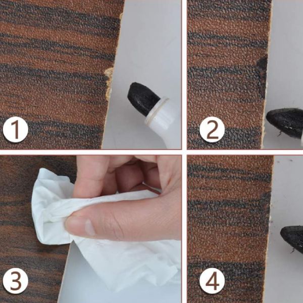 Со 8 маркери и 8 восочни бои во нијанси на храст, цреша, орев, махагони, јавор, црно, сиво и бело, нашиот комплет овозможува совршено усогласување на секоја оштетена површина. Мешајте и комбинирајте бои за идеална реставрација на дрвото.