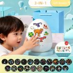Отстранете го абажурот за да откриете проектор со висока резолуција кој прикажува привлечни слики како диносауруси, ѕвезди и сирени, создавајќи магична атмосфера.