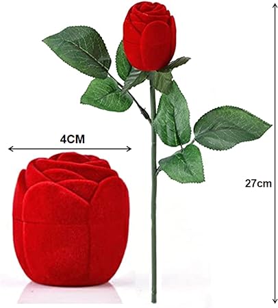 Овој артикл тежи 65 g и е важно да се напомене дека вклучува само кутијата за прстени во форма на роза, а не и самото прстен.