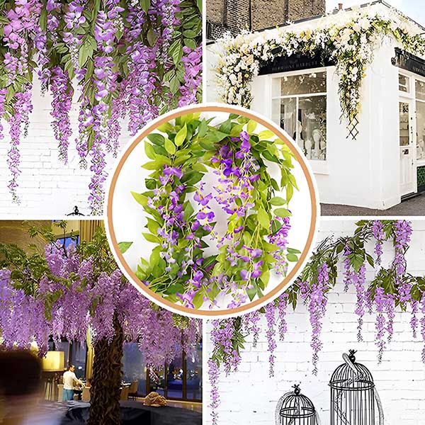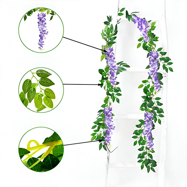 Заморени од одржување на вистински цвеќиња кои венеат и бледнат? WISBLOOM е имитација на цвеќиња од глицинија со лисја од бршлен која додава природна убавина во вашиот простор без никакви проблеми. Овие висечки цвеќиња остануваат свежи и обоени година по година, осигурувајќи дека вашиот двор или дом секогаш ќе изгледаат прекрасно.