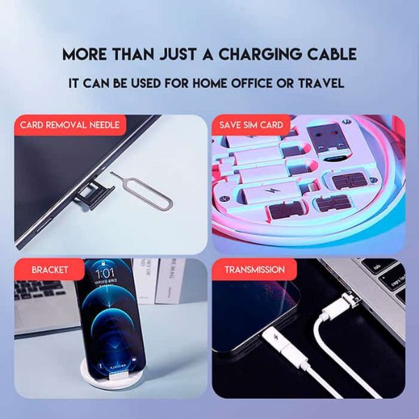 Пакетот вклучува кутија со три слота за SIM картички, резервна SIM картичка и сеопфатен кабел кој овозможува лесно префрлање помеѓу различни моди: од USB традиционален до USB Type-C, од USB до iPhone, од USB до MicroUSB, од Type-C до Type-C, од Type-C до iPhone и од Type-C до MicroUSB!