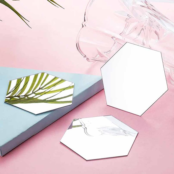 Овие налепници се изработени од премиум рефлектирачки материјал кој точно го репродуцира изгледот на вистинските огледала. Со нивната хексагонална форма, секоја налепница без напор додава современ допир на вашите ѕидови.