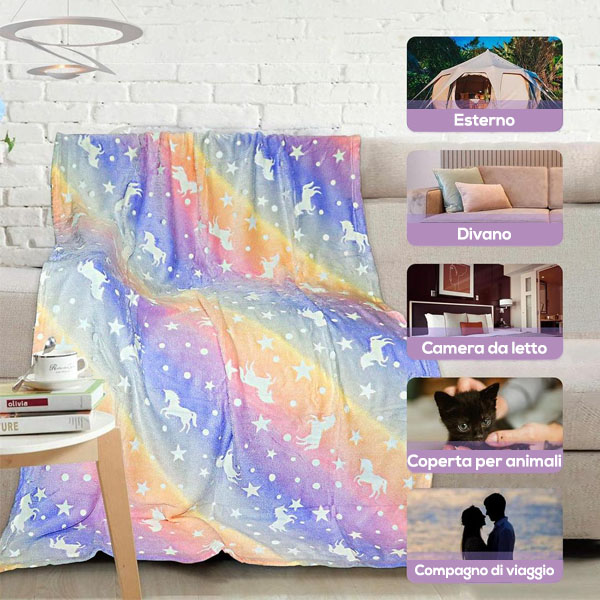 Удобно и топло ќебе кое свети во ноќта! Можете да изберете мотив со еднорог или диносаурус!