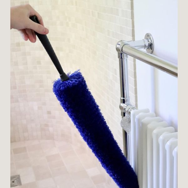 Не е потребно отстранување на решетките на радијаторите. DUSTOFF е специјално направен за чистење на радијатори. Неговата електростатичка наелектризираност привлекува прашина и нечистотија, што го прави идеален за радијатори со панели, колони, ребра, скали и за сушење пешкири.