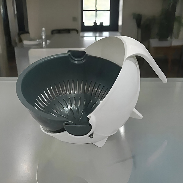 Автоматскиот ротирачки кош за исцедување брзо и ефикасно ја отстранува водата, одржувајќи ја работната површина сува и чиста. Оваа функција е особено корисна кога треба да се обработуваат многу зеленчуци или овошје одеднаш.